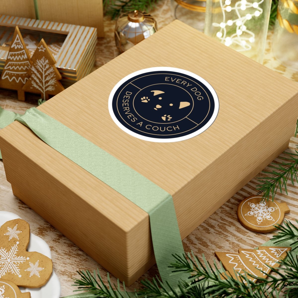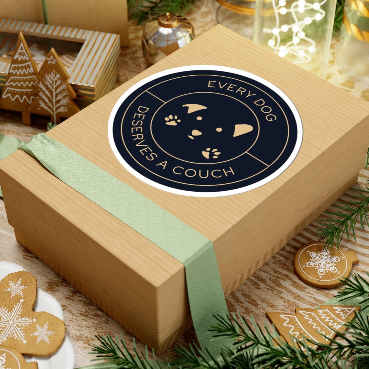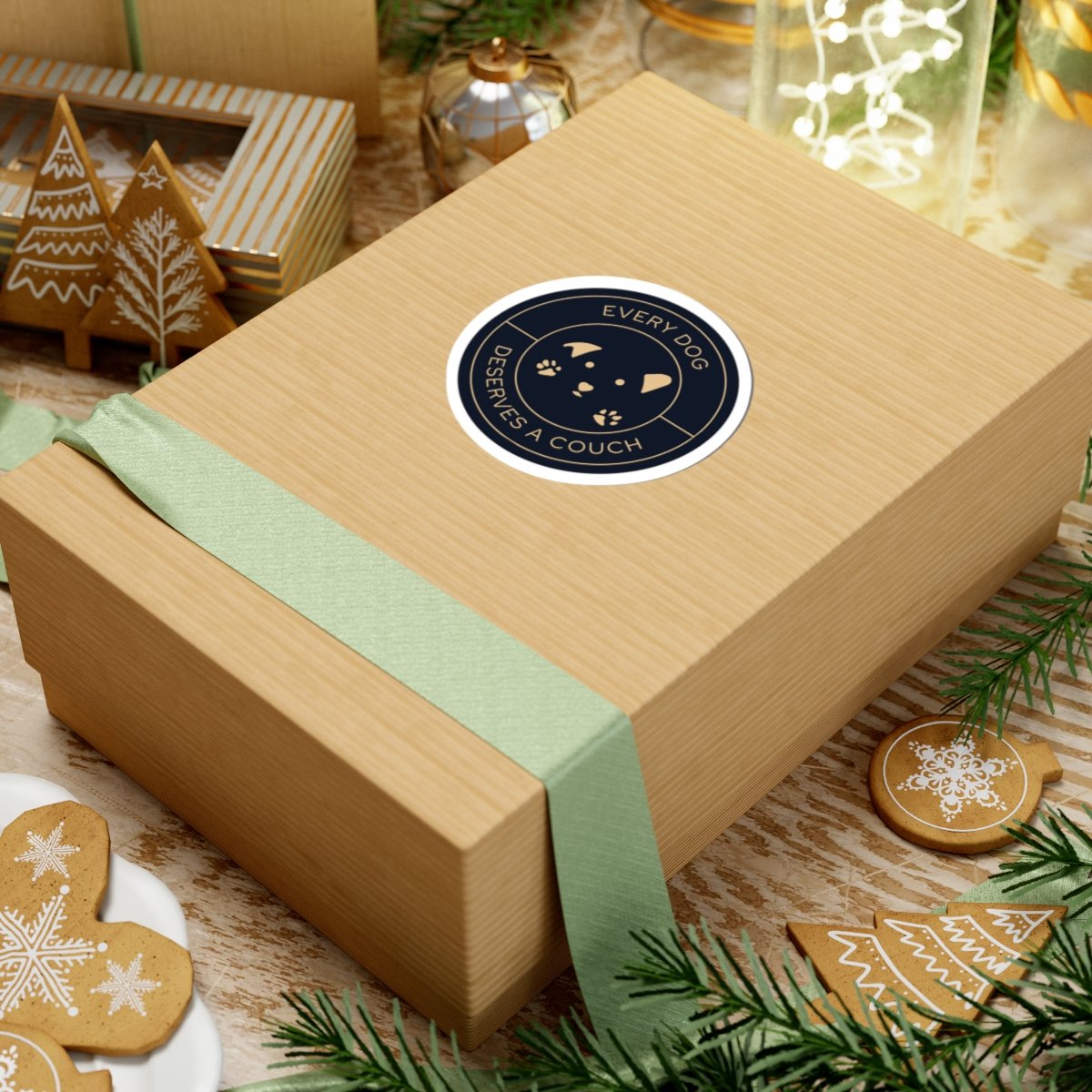 A glossy vinyl sticker that speaks to anyone who treats their dog like family. The playful black and gold design — ‘Every dog deserves a couch’ — carries a wink of rebellion and a lot of heart. Place it on a laptop lid, a journal, or a window to declare allegiance to couch-sharing, muddy-paw cuddles, and living-room naps. The colors pop against light or dark surfaces, and the kiss-cut shape makes peeling and applying clean and simple. This sticker fits naturally into the everyday life of dog lovers who embrace small disruptions to pristine furniture in exchange for warm, unhurried company. It’s tactile and bright, adding a casual, lived-in note to spaces where comfort matters most.