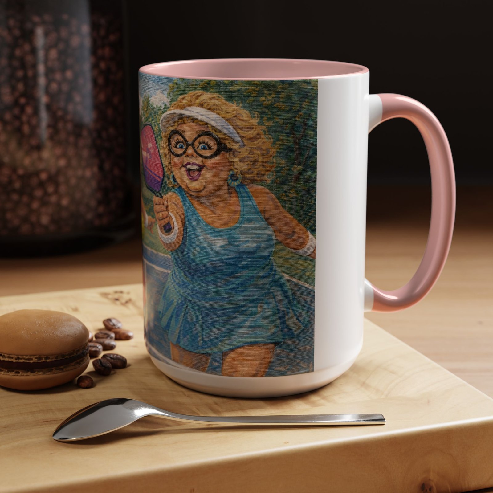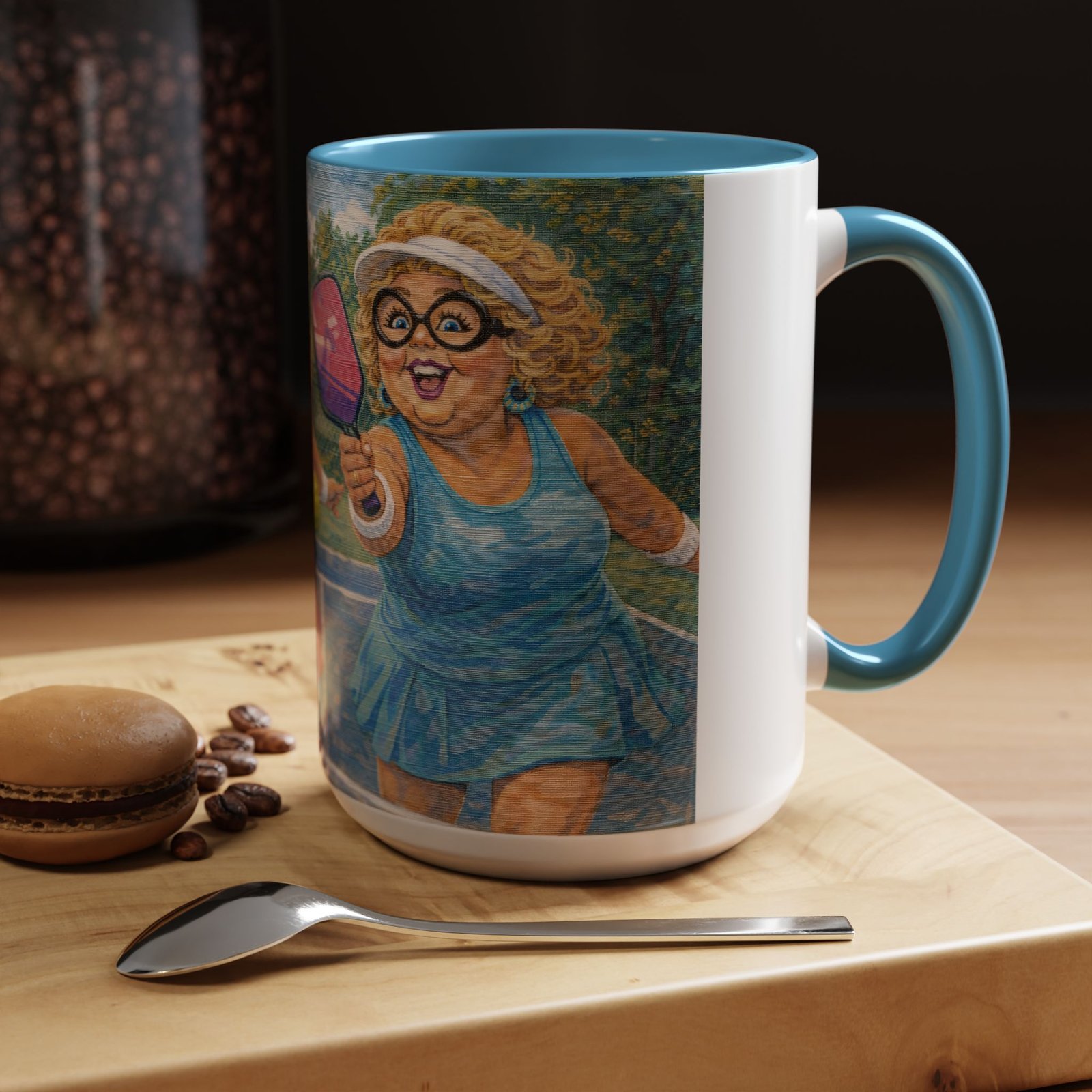 This ceramic coffee mug brings a splash of color and everyday cheer to morning routines. The glossy finish and bright interior/handle options create an eye-catching contrast against the clean white exterior. Sturdy C-shaped handle and two size choices (11oz and 15oz) make it easy to sip at the kitchen table, at a shared breakfast counter, or while hopping between pots and pans during busy mornings. Safe for microwave reheats and dishwasher cycles, it’s built for repeated use without losing its vibrant printed design. Lead- and BPA-free, it’s a practical, colorful companion for daily coffee, tea, or whatever fuels the day.