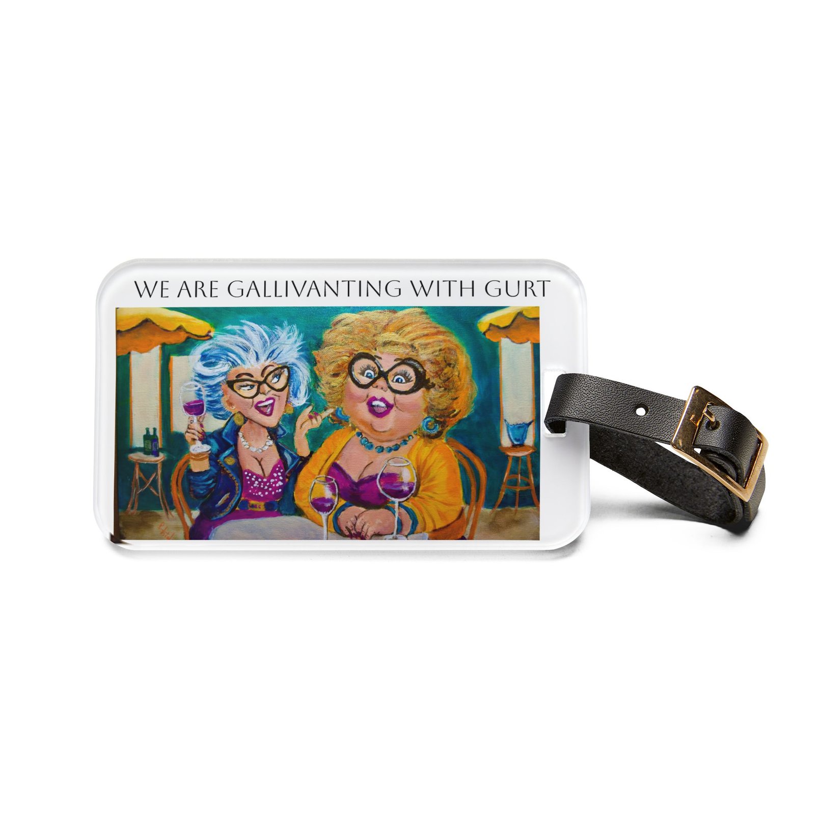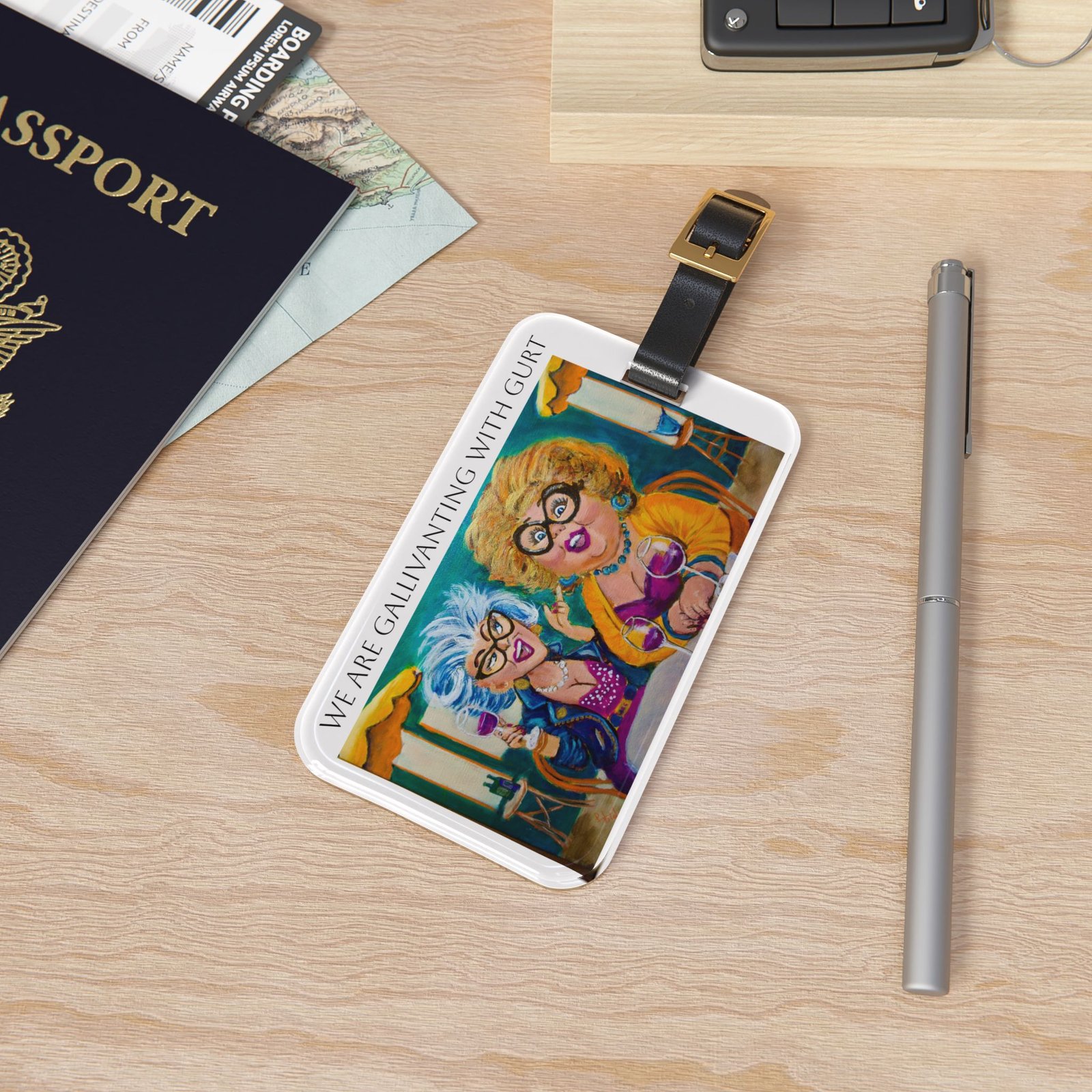 Partners in Wine – Colorful Travel Luggage Tag – “We Are Gallivanting with Gurt”