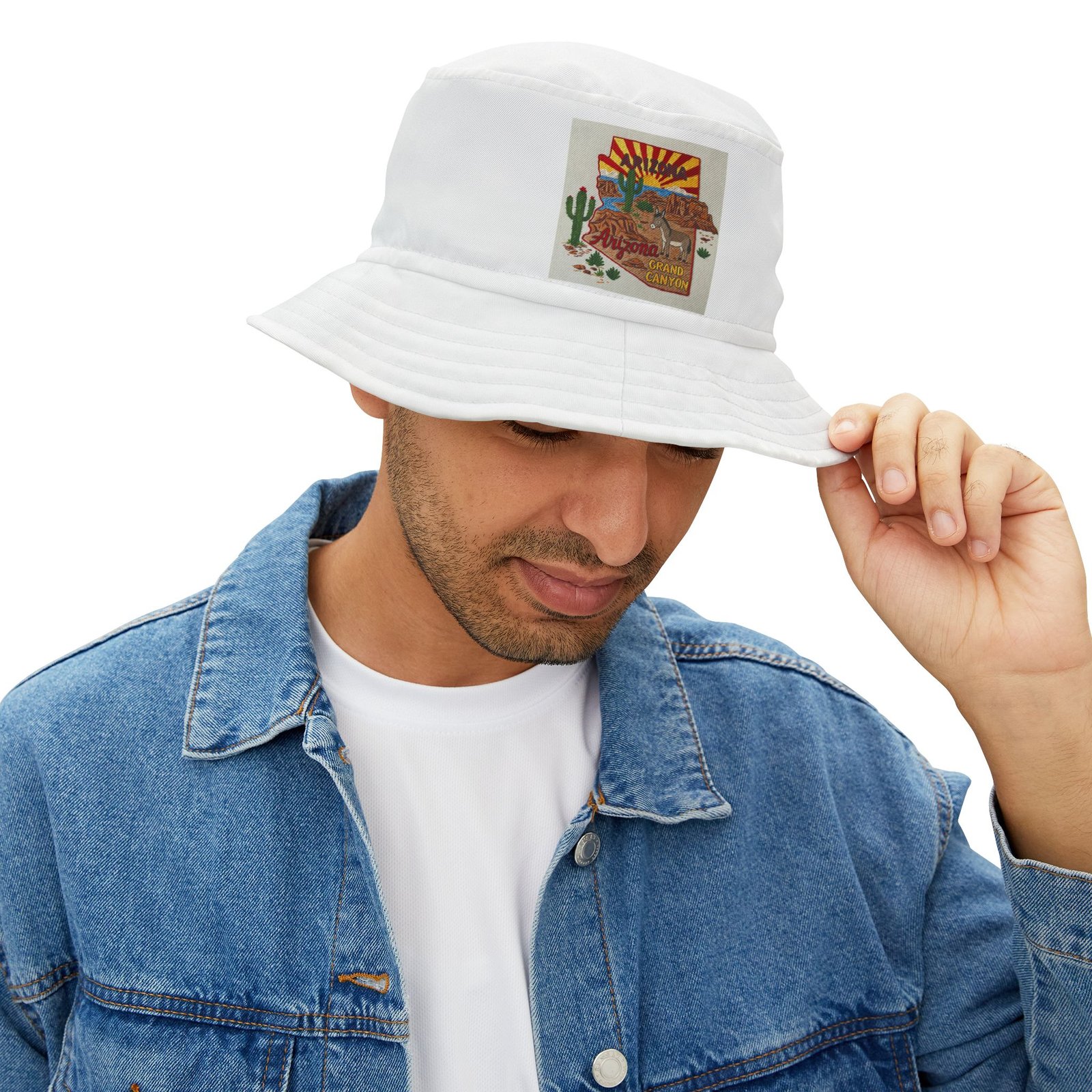 White Grand Canyon and Arizona Colorful Retro Summer Bucket Hat –